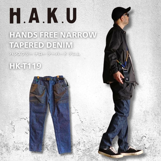 H.A.K.U HK-T119 ハンズフリー ナロー テーパード デニム HANDS FREE NARROW TAPERED DENIM