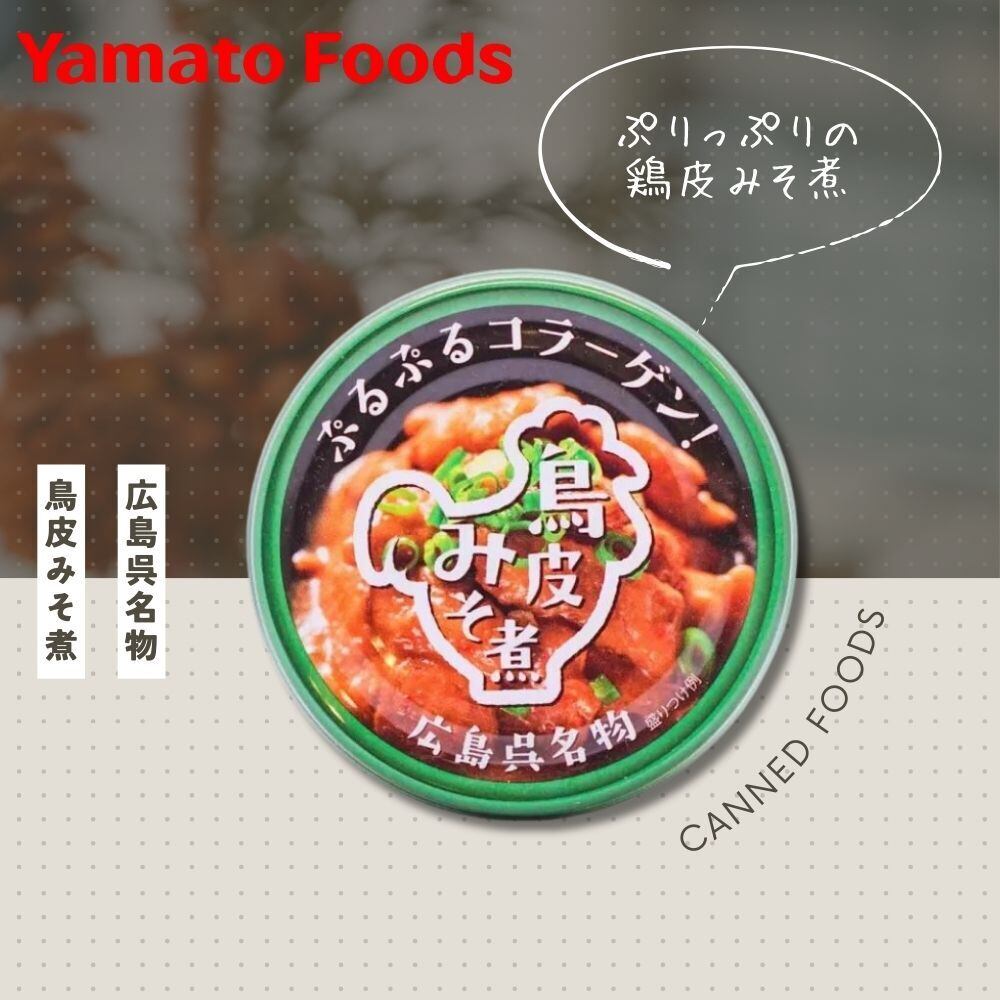 3種類の味噌のバランスが絶妙でピリッとマイルドな味噌の風味とやわらかい鳥皮と弾力のあるこんにゃくで食感も楽しめます。お酒やご飯のお供にピッタリ!戦艦大和の地、広島県呉市の居酒屋で戦後より親しまれている、鶏の皮を味噌で煮込んだ一品料理。店により味は異なるものの呉市一帯では、鳥皮の味噌煮やみそだきの名で浸透している名物料理です。実際にお店で出されているレシピを基にアレンジし、その美味しさを缶詰に閉じ込めました。鶏の皮をじっくりと煮込み柔らかい食感に仕上げています。