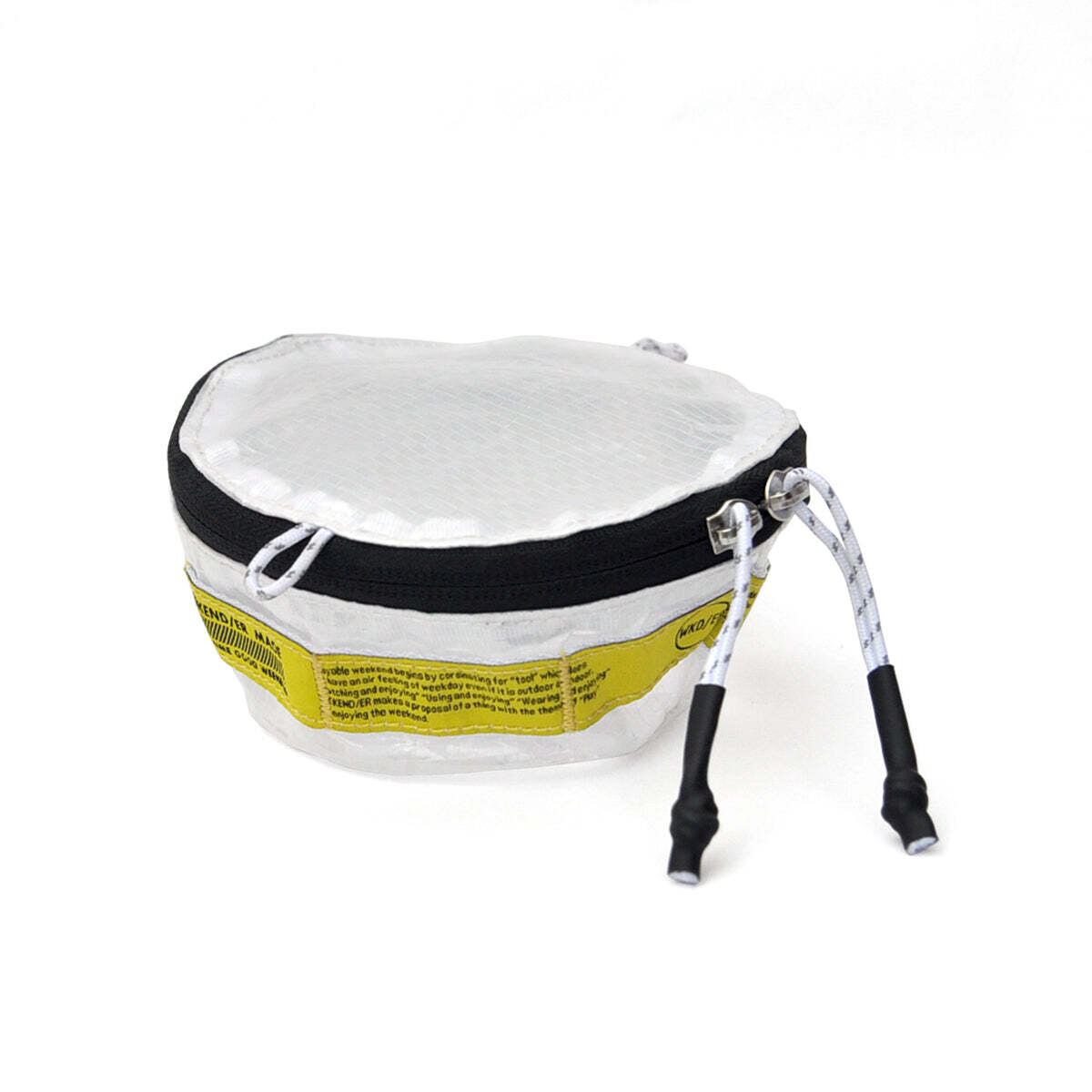 300mlのシェラカップが4個入る容量。 ループが付いているのでハンギングが可能です。 ループや引手のヒモはリフレクター素材の糸が織り込まれており、光が当たると反射します。