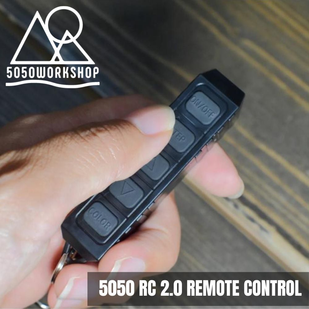 5050WORKSHOPの5050 RC 2.0は、5050 RCがリニューアルしたモデルです。寝袋に入りながら、椅子に座りながら、など様々なシーンで便利に使用できます。リモコンを使うことによって、電源のON/OFF・モード切り替え・明るさ調整が可能。赤外線を利用しているので、切替や繋ぎ直しなどの必要がなく簡単操作。1つのリモコンで、いくつもの製品の操作が可能です。