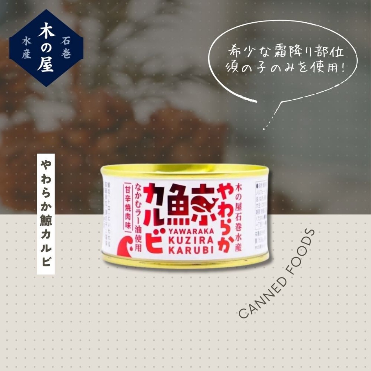 以前は「くじラー油」として販売していましたが、使用する部位をくじらの「須の子(すのこ)」という霜降り希少部位に変えたところ更に美味しくなったのでリニューアルしました。