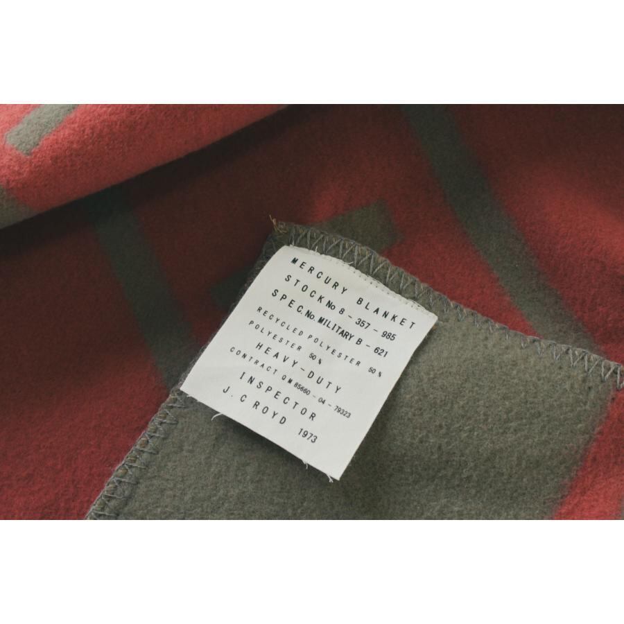 アウトドアシーンで欠かせない、焚き火のそばでもお使いいただける難燃性のジャガード織のブランケットです。タグまで細部に拘った、マーキュリーブランドにふさわしいヘビーデューティーな造りです。防炎製品性能試験検査済。