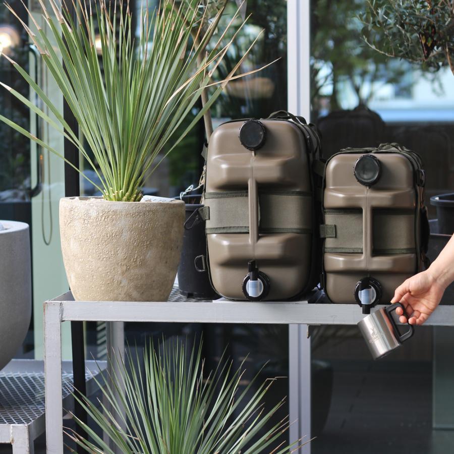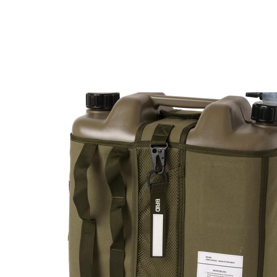 ワックスコットン生地のオリジナルカバーを取り付けたウォータータンク。