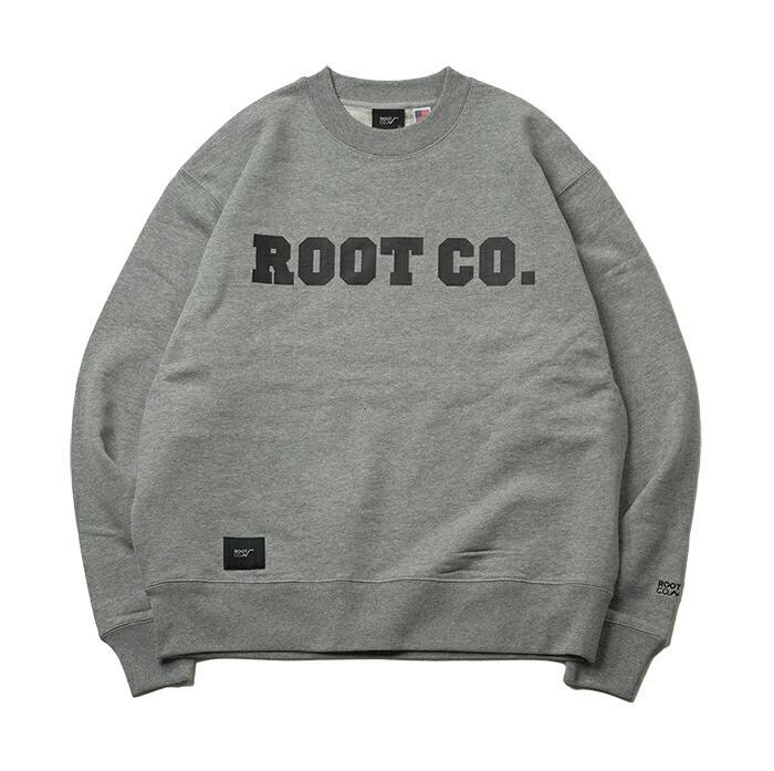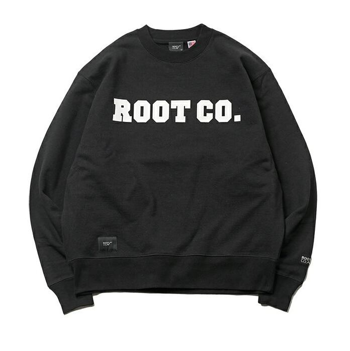 胸元にROOT CO.のロゴプリントを配置。また、右裾部にはロゴが施された織りネームを配しました。
