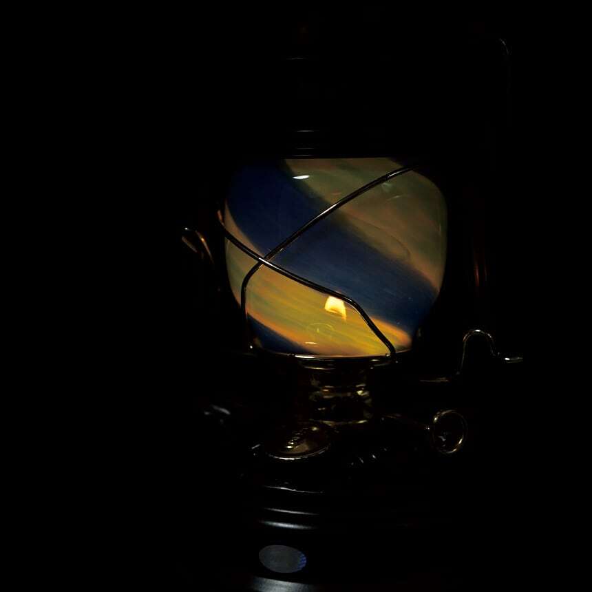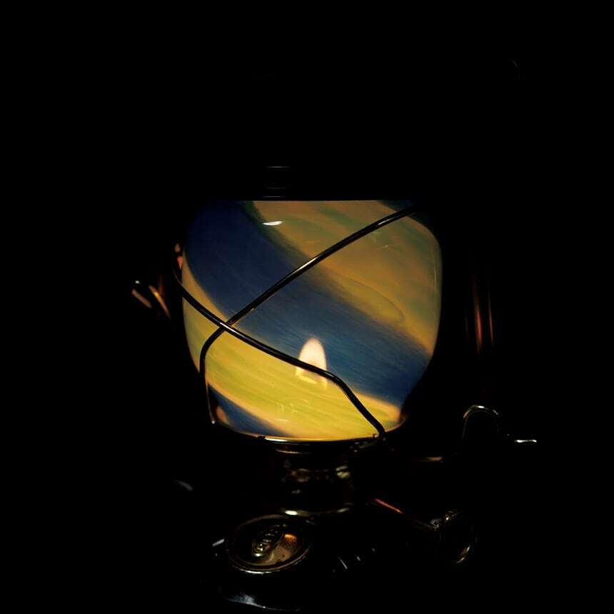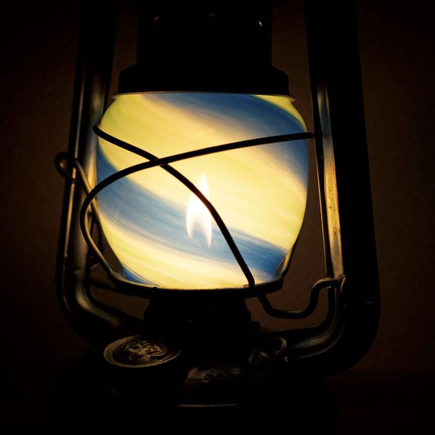 火を灯せば辺りを柔らかい光で包み、ブルーのラインが美しく光る。