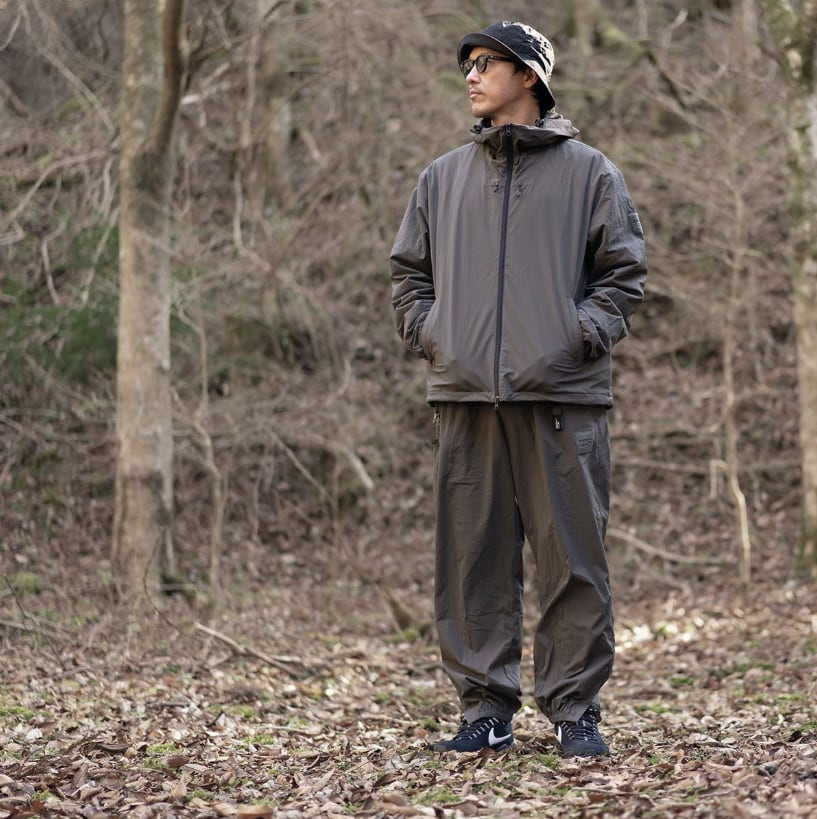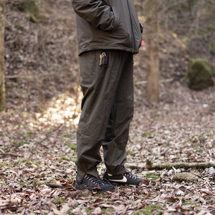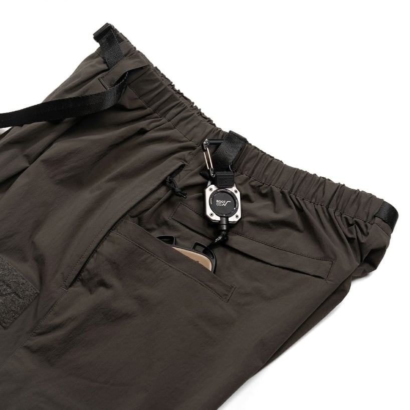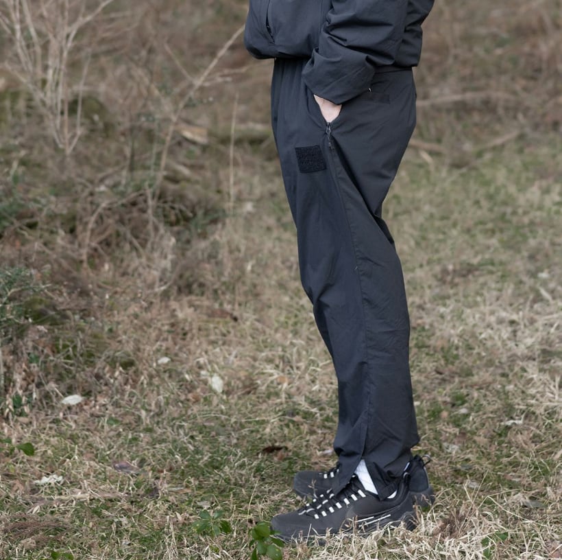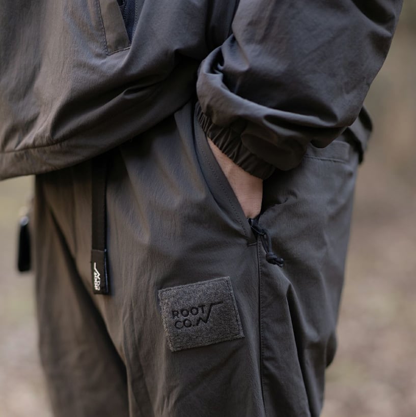 ギアループや各種ポケットなど、ROOT CO.独自のギミックを取り入れています。また、裾にはファスナーを設け、シルエットの調整が可能です。