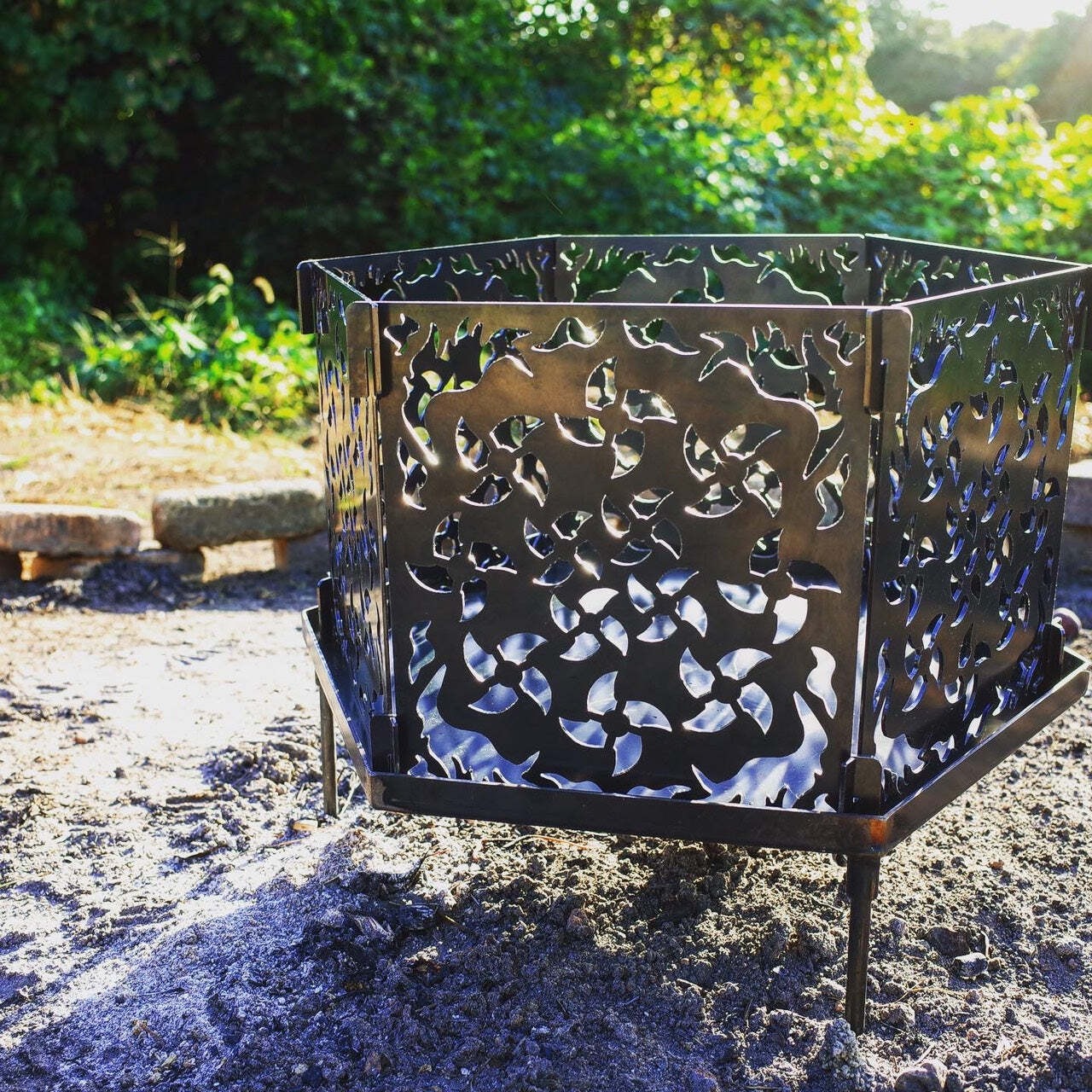 暗闇の中を踊る炎の美しさをより引き立てるとご評価頂いている組み立て式の焚き火台で、手裏剣をモチーフにしたデザインに仕上げています。
